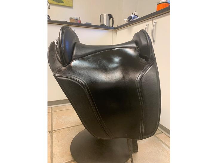 Dejlig bomløs sadel sælges, da hesten desværre ikke er til mere. Der er selvfølgelig brugsspor på den, men den fremstår i pæn stand. Anlægsfladen er på ca 50 cm.