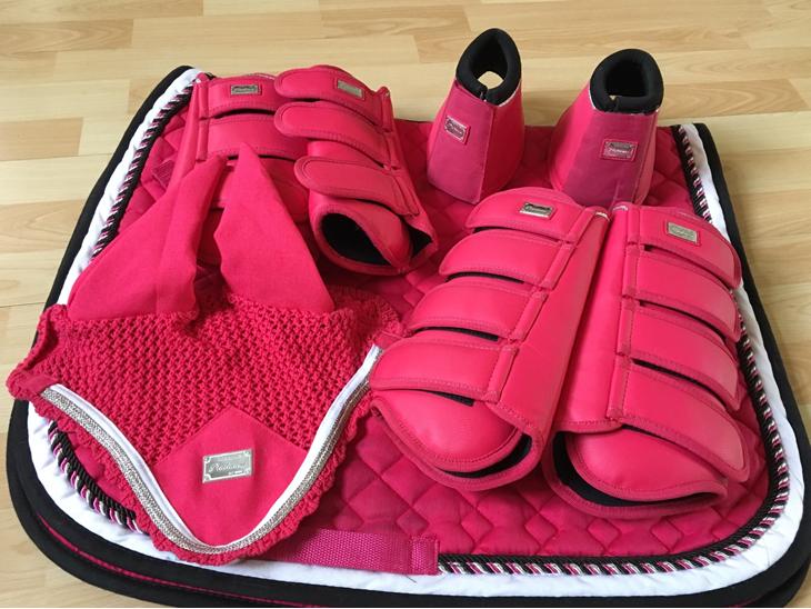 Super lækkert rbh sæt sælges da det ikke passer min hest. Underlaget str 17, er brugt lidt og er ikke rbh men passer perfekt i farven. Gamacher og hut er str full og klokker er str L. Kun prøvet på og ny prisen er over 1400kr