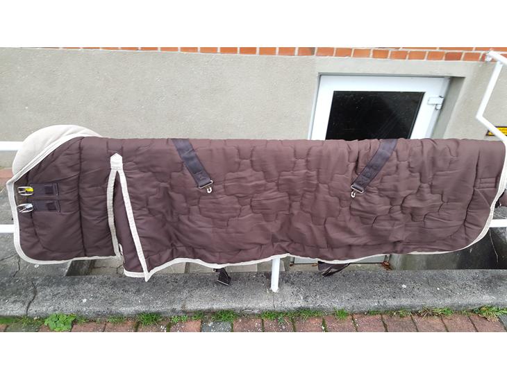 Super lækkert stald dækken med blød "puff" kant , ligger super godt på hesten er brugt meget sparsomt og mest som stævne dækken