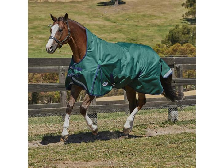 Weatherbeeta comfitec plus dynamic high neck dækkener, et med 0 g og et med 220 g.