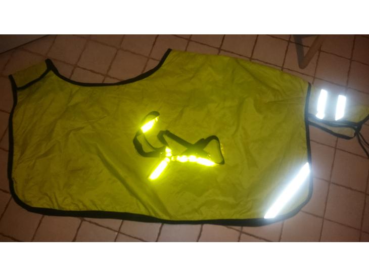 Pænt og velholdt refleks-ridedækken med en smule foer str 135 men passer +/- 10 cm. incl fortøj med refleks
