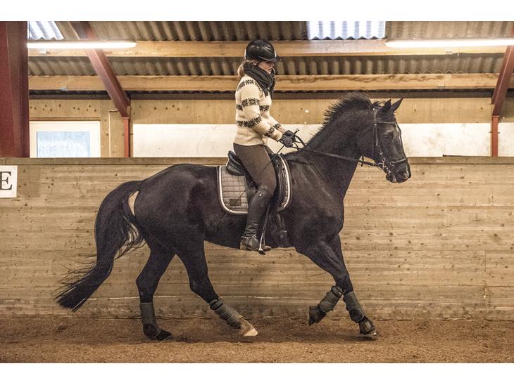 Hun er en super sød hest på banen med tre gode gangarter. Hun skridter dejligt stort og flot, og traven skal fremhæves, hvor hun virkelig træder igennem. Galoppen har et stort og tydeligt afskub fra bagbenene. Alle gangarter udføres med en stor gålyst og hun er utrolig lærenem.