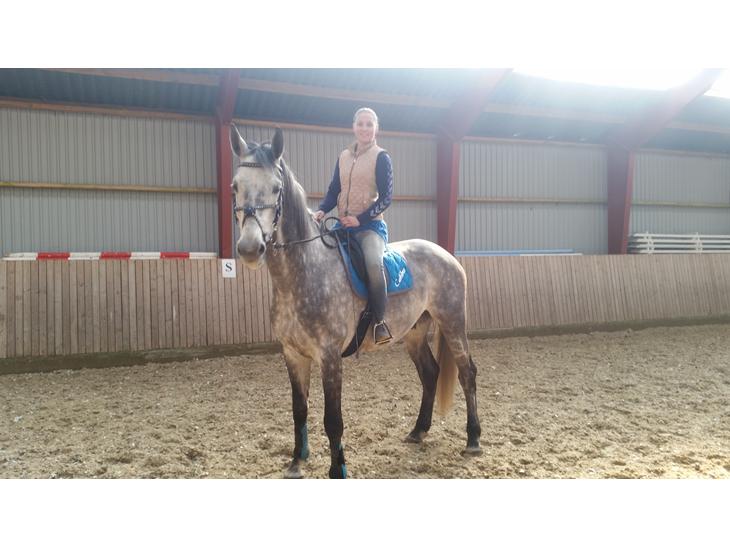 Han har været til Dressur stævner og er rigtig sød og have med i byen. han kigger ikke eller er bange for noget. også selv en våd dressur bane gør ham ikke noget, der går han kun bedere.