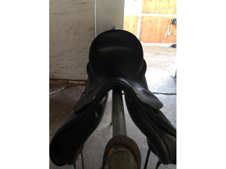 Supervelholdt dressur sadel sælges. Passet med alt. Ingen huller eller store ridser. Gjordstropper i super stand. Købt 7/3-14 gennem Rützou. 5 års garanti på bom. Har stadig garanti bevis.