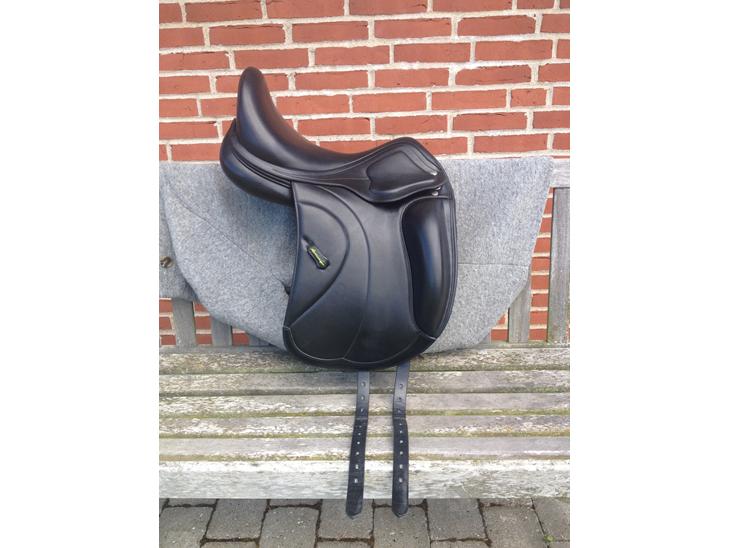 FANTASTISK sadel i dobbelt kalveskind, uldstopning og fleksibel bom, bredt kammer der giver frihed til hestens ryghvirvler og formet så rytters vægt er hvor hesten bære stærkes. 2 år gammel (kvittering haves), kun brugt knap 1½ år grundet skadet hest. Passet med Amerigo´s egne plejeprodukter. 17½ tommer, bom i lamineret træ, str. +1 (27.5 cm). - kan justeres efter behov. Sidst stoppet efter i november 2015.