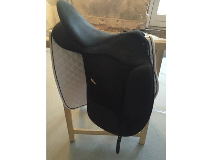 Wintec pro dressursadel med cair. 17 tommer. Meget pænt og vedligeholdt sadel. Brugt sammenlagt 2 år. Der sidder store knæpuder i, men der medfølger også mindre. Der medfølger også Wintec stigeremme, dog uden stigbøjler. Derudover sidder der et blåt kopfjern i, men der medfølger også gult, grønt og sort kopfjern + en måler.