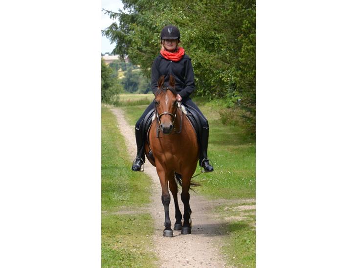 Nu som voksenrytter rider hun sin max 1'er, også til stævner