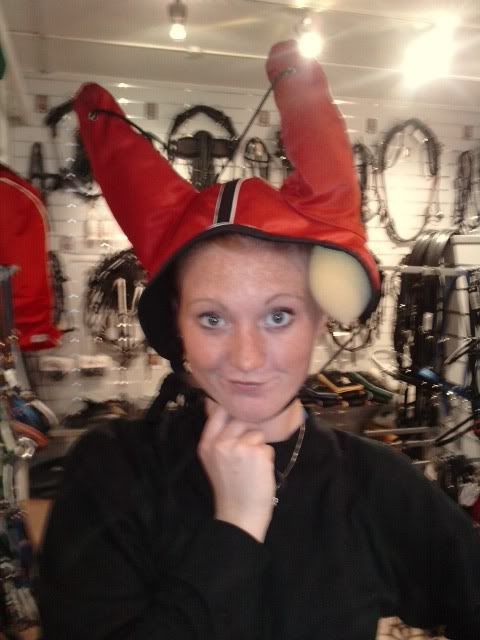 Det nederste er hvad eg lige vide som du selv siger en hut med vat i som bruges til løbsheste og jeg mener at snorene er til for at holde ørene oppe da hestene ikke helt selv kan stye dem fordi de er så store :b