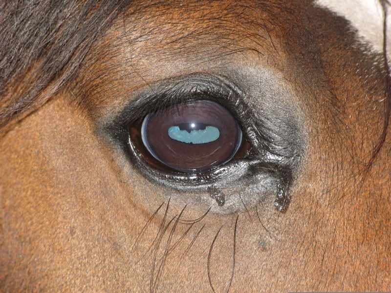 Hvis en hest absolut skal have et "pænt" glasøje, skal det være lige som dette her: http://img.photobucket.com/albums/v647/Sixpencen/bl.jpg - altså meget sort og så en ynd blå ring.. (Bryder mig tilgængæld slet ikke om heste, der mangler farvepigmenter ligesom denne, og derfor er lyserød!)