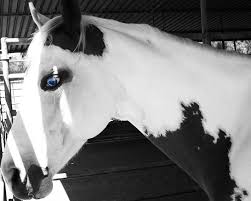 MEN en hest jeg passer pt og en gang har tilredet, har noget blot i sit ene øje, det er ikke helt blåt ikke engang halvt men det er tydeligt der er noget blot og det er så charmerende ved ham