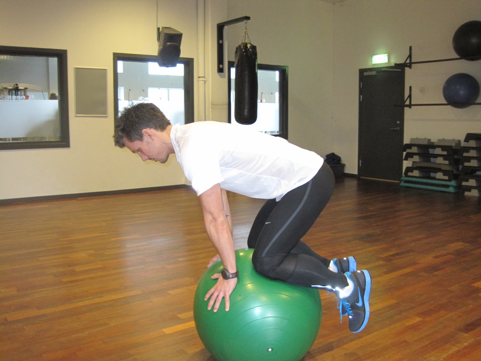 Jeg vil sige med bolden, at det nok er bedst at starte med at sidde på den, løft et ben skiftevis, når den er i vinkel så løft begge ben samtidig, det er mega svært at holde balancen på knæ, hvis den ikke er der, men en masse øvelser på bold der styrker din core muskulatur, når du begynder at ride, så er trav i skiftevis letridning og let sæde super til balancen