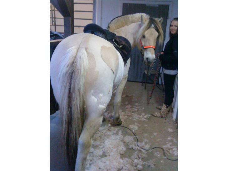 han var lidt langpelset så vi klippede ham - han tog det bare SÅ pænt! stod helt stille kiggede bare på den og det var det(dog skulle han lige en gang se om den kunne spises;)) Det var første gang han er blevet klippet men han tog det var mega pænt! er så stolt over den pony(: