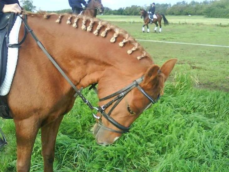 Hun har redet LA i dressur og spring. Men så blev hun brugt til avl i Holland. Også har hun på en måde glemt det/: men hun går til biddet. Pt ridder vi Lc3 i dressur, spring er vi ikke kommer igang med til stævner inu. Da jeg bliver lidt nervøs og det smitter(: hehe