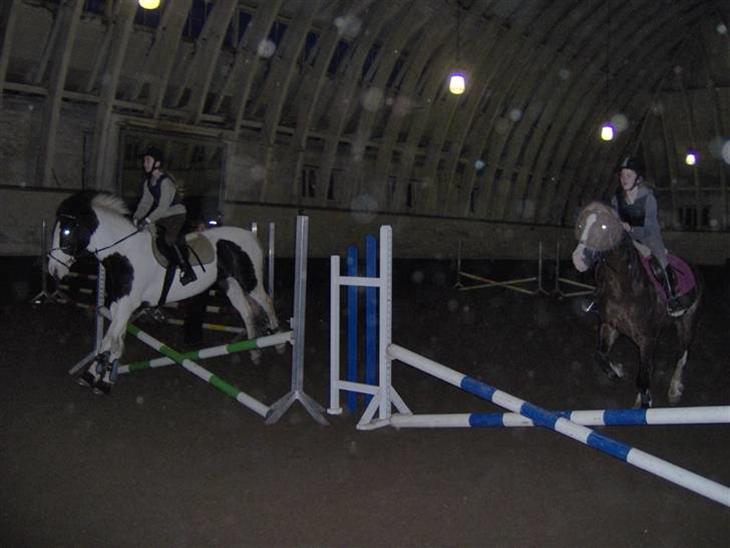 Josephine og mig springer par spring på hestene Pixiline og Gipsy........