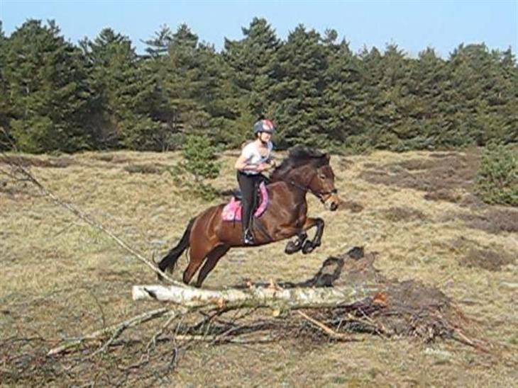 Easy er en lidt underlig pony, for ved nogle spring hopper hun meget højt over. Og nogle gange hiver hun ligesom tøjlerne ud af hænderne på en, fordi hun springer så meget til. Og så når jeg ikke at få samlet tøjlerne op igen altid q: