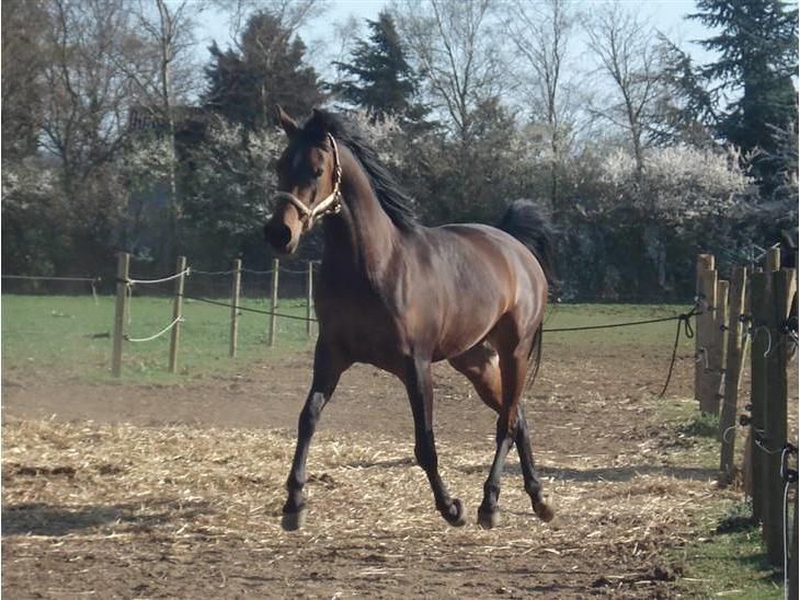 Jawa pjatter rundt på ridebanen, efter hun var blevet longeret.