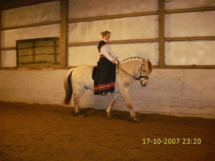 Tjah... Linda og jeg skulle rigtig have redet en Pas de Deux på Tröja og Thor til vores indvielsesstævne på HGRK. Til den lejlighed havde vi lånt os frem til den norske folkedragt, da vi synes, at det kunne være lidt fint :-D Vi kom desværre ikke til det i denne omgang (vi tager chancen en anden gang Linda ;-)) - men jeg kunne ikke lige dy mig....jeg måtte lige have dragten på alligevel :-D