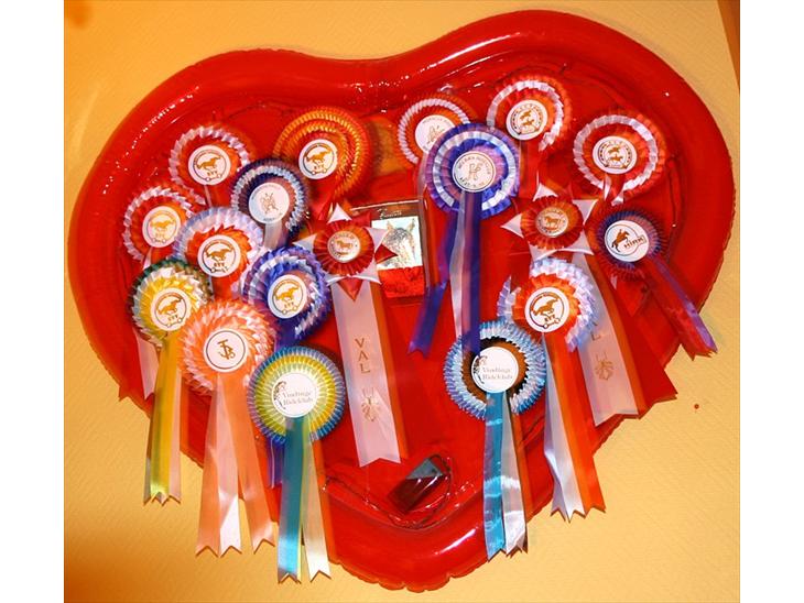Her er billeder af de rosetter vi har vundet sammen, der vil også komme nogle billeder hvor han har alle sine rosetter på og sit klubmester dækken.