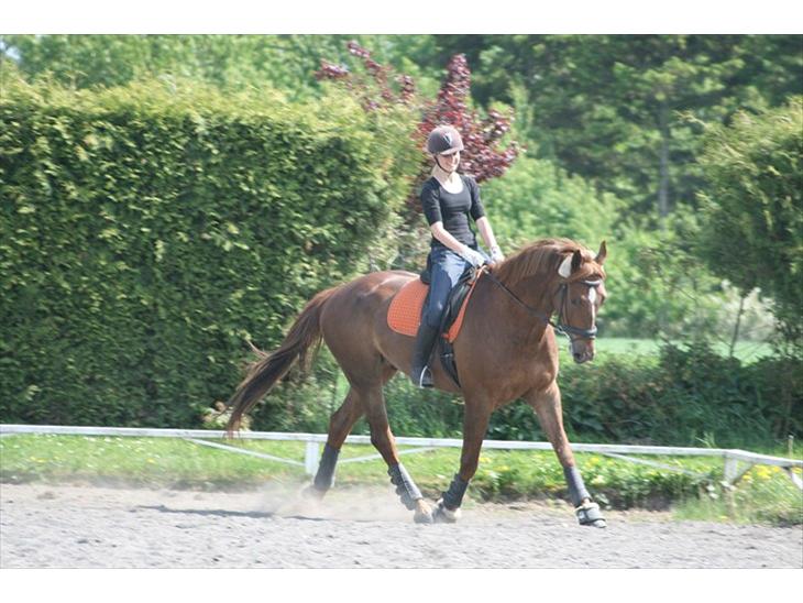 Der bliver redet udelukkende med sæde, ikke nogen schenkler, KUN sæde og en let støtte på udvendige tøjle.