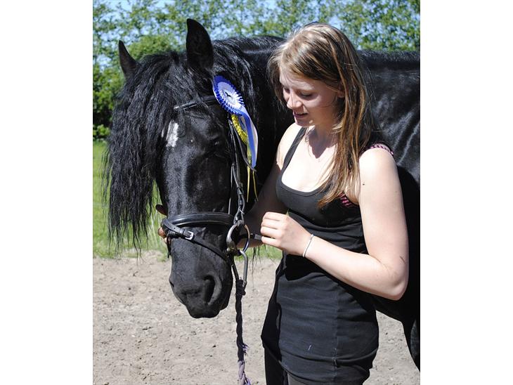 Han vandt en anden plads for bedste hingst i sin gruppe! (: - Så det er en stolt ejer der nu står tilbage med den blå roset og den sorte hingst! (: