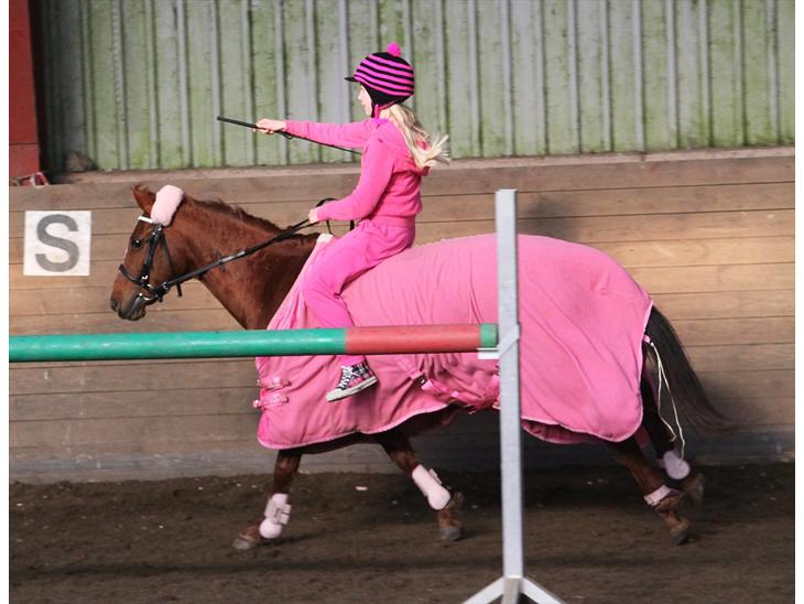 Cecilie & Everest til udklædnings- og ringridnings konkurrence på Ledøje-Smørum rideskole - VSR 19-02-2012. De var som i kan se klædt ud som Pink Ladys ;-)
