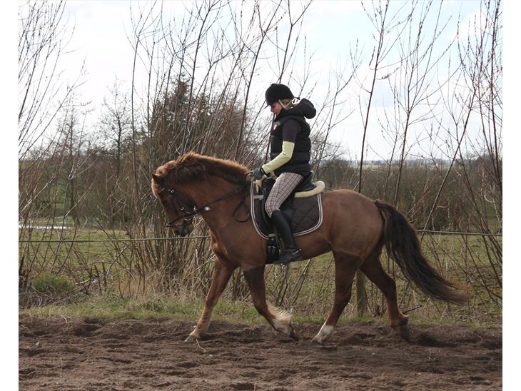 - Så er vi igang efter vi har stået stille næsten hele vinteren. Simba er rigtig frisk for tiden, og derfor prøver jeg på at ride ham på en anden måde end hvad vi gjorder inden vinteren. Han er blevet MEGET bedre !