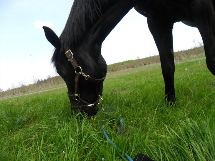 Tif og jeg tog på hyggetur i skoven uden sadel, hvor hun så fik lov at gå og græsse imens jeg slappede af i solen :) <33