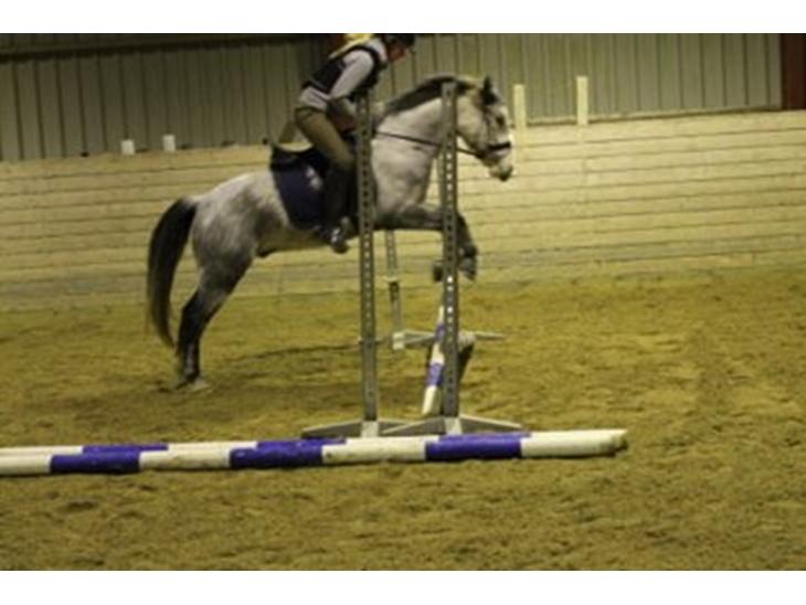 Det er svært for ham, da det er første gang der kommer en smule højde på i laaaang tid, men han gjorde det så godt! Han er helt igennem dressur pony, så det med at få meget kraft fra bagbenene er lidt svært fordi han ikke har fundet ud af at sætte dem rigtigt! ;-)