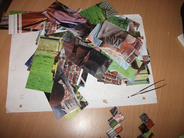 Så er jeg igang med min første "genbrugs" taske. Vi har klippet alle stykkerne ud fra et horze katalog, tapet det også flettet.