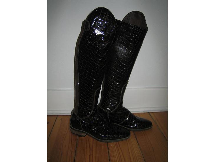 Gode som nye, brugt få gange. ingen ridser el andet anmærkninger. Kun lidt slidt der hvor sporen har siddet.De er ikke rynket i skindet.Der er kommet nye såler på hælene. De er vildt fede. På den ene støvle, er der tabt få sten, men ellers ikke. Grunden til jeg ville sælger dem er at jeg ikke får brugt dem. Lidt ærgerligt.