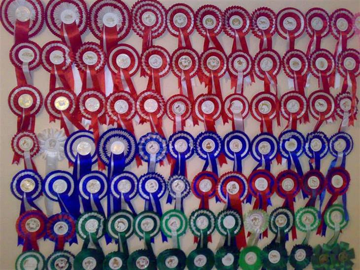 9 mesterskabsrosetter (vundet i mesterskaber osv .. dem der hænger i gardinet :))