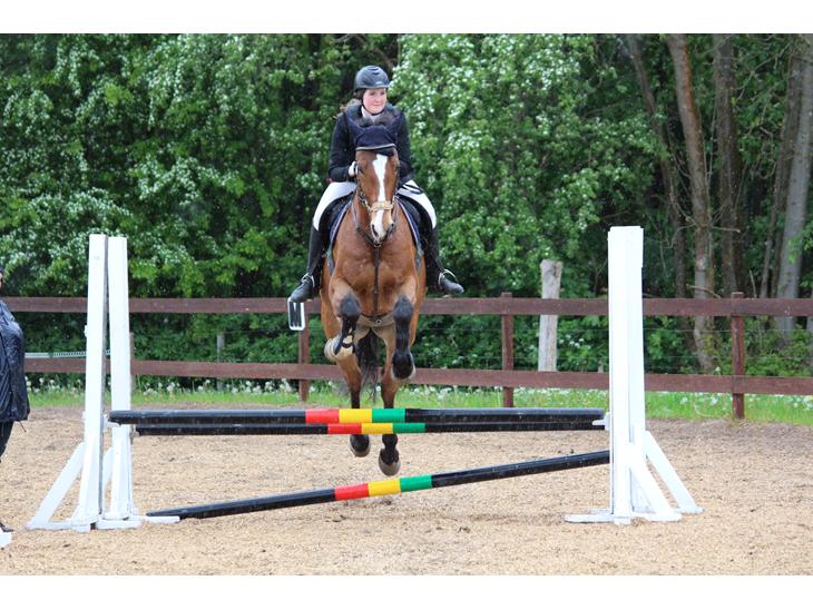 vi red 70cm men rev en bom. Det regnede sygt meget, så der var lidt glat på banen. Men han klarede det egenligt meget godt.