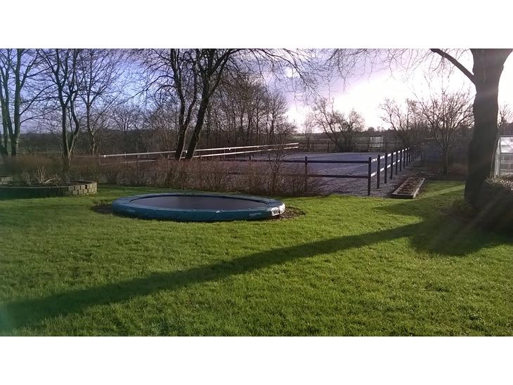 Der er udendørs ridebane 20x60 med drænet bund så den kan bruges hele året. Frostfri