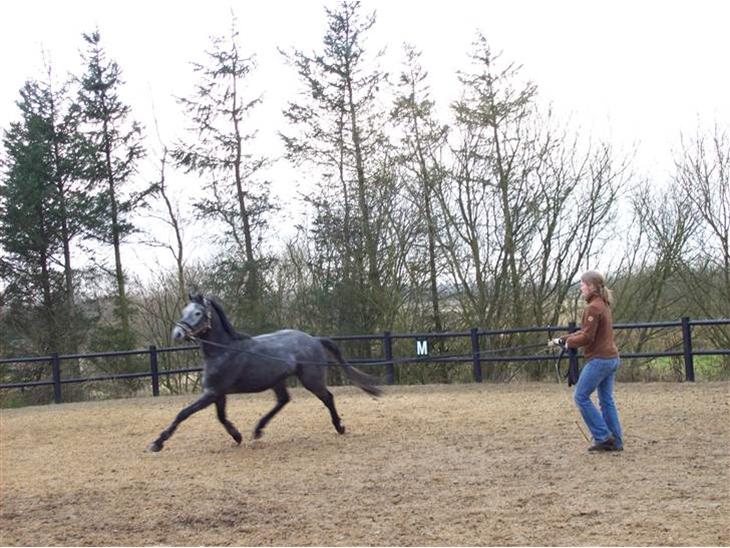 Jeg har ca. kendt ham i to månederne og er begyndt at longere ham og har haft gjord og underlag på ham. Han lærer meget hurtigt og er dejlig at arbejde med. Han er desuden blevet meget skrap til at stå bundet og blive striglet. Det er en stor ting for en lille hest:)