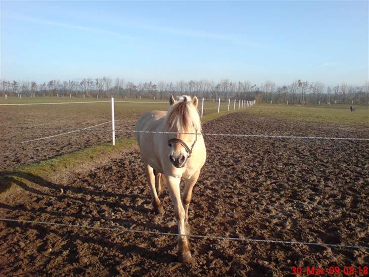 Jeg red på Skønne Pepsi går (tirsdag) til undervisning, det er en meget dejlig fjordhest du har fået