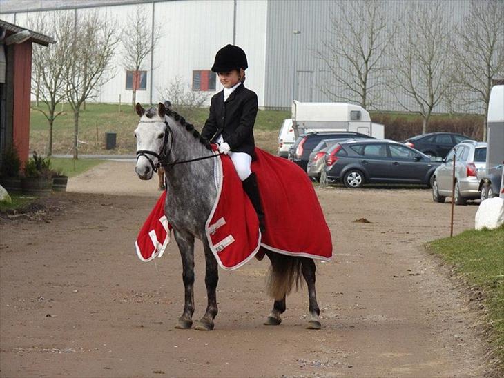 Det går super! Han er bare fantastisk! Cille har lige været til minni stævne på ham her i weekenden, og han tog det bare så fint! Han var lidt opmærksom på damerne, men han kikkede kun !