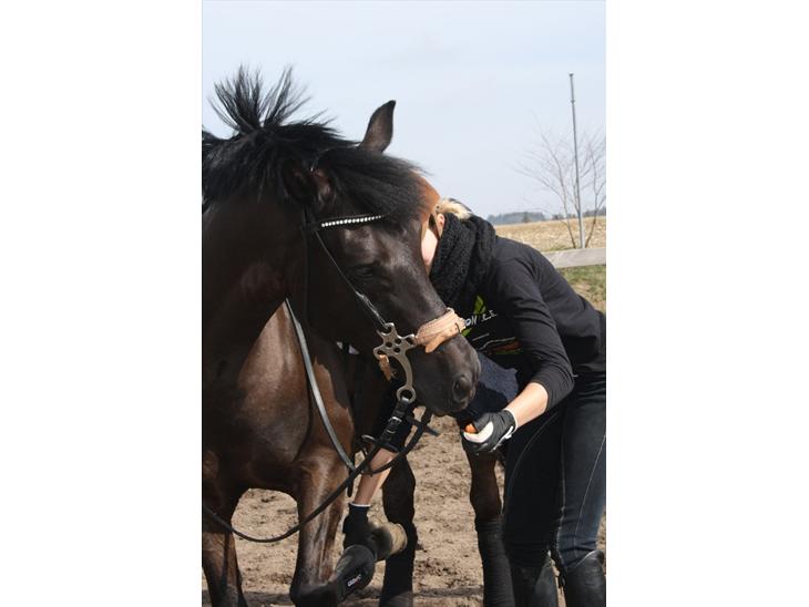 anden gang havde han skåret sig i læben lige der hvor bidet skulle sidde så der kunne jeg heller ikk tage fat i hans mund uden det gjord ondt på ham :-( så jeg havde redet uden bid i den uge inden så vi havde ikke rigtig haft mulighed for at kunne træne :-/