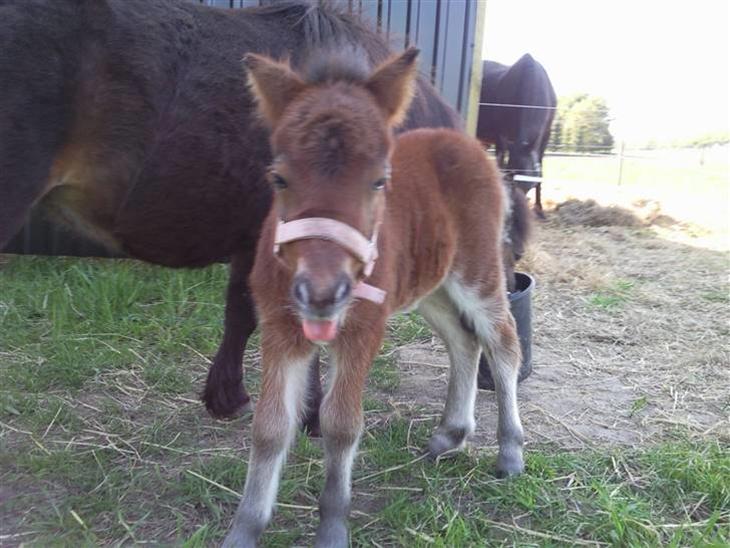 Calina kom til verden søndag d. 26 april mellem kl. 00 og 08. Hun er brun uden aftegn og er et frisk og sprælsk hoppeføl som gerne tager en tur rundt i folden uden sin mor.
