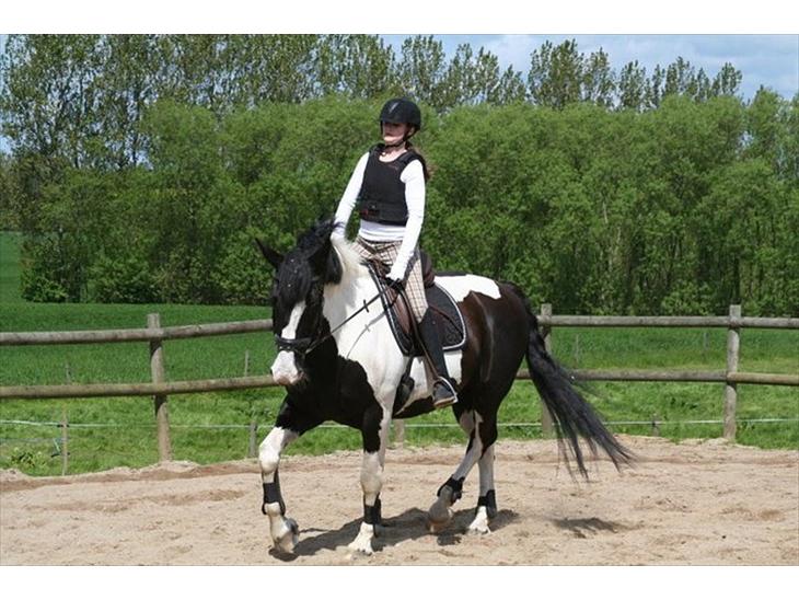 Han er broget, hvid og sort, og han er blanding af tinker og friser. Han er rigtig lækker i dressur, og skal måske lærer at springe med mig. Han kan sagtens ride ture i trafikken, men kan blive bange for en dum sten, eller lignende. Han elsker mad, især æbler og gulerødder. Han er rigtig nem på staldgangen, nem at rykke, man skal bare prikke lidt til ham, han er ikke så vild med nogle sprøjtemidler eller sådan noget i hans hoved eller pandelok. Han er 9 år gammel. Nem at trække på fold, medmindre at han har stået inde i et godt stykke tid.
