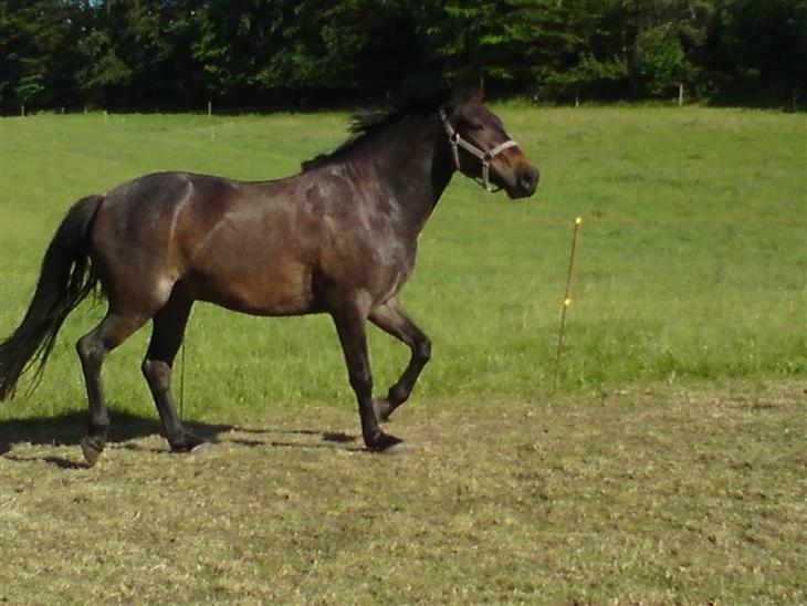 Da han var tre blev han trafiksikker, bar eved at at jeg gik med over i skoven 2 gange og efter det red jeg der over på ham og sidan da har han ikke været bange for hverken biler, lastbiler eller traktore, bortset fra at han kan blive meget bange for cykler i vejkanten:D kan godt huske den dag :) vi red tur ovre i skoven, og pludselig ville han kke forbi en cykel der stod i vejkanten, jeg ved ikke hvad der gik af ham. Men han blev så bange at vendte om og galoperede væk . Han var ikke svær at stoppe da han var kommet væk fra vejen med cyklen, men han var helt oppe og køre, så var nød til at stå og berolige ham. skøre hest:)