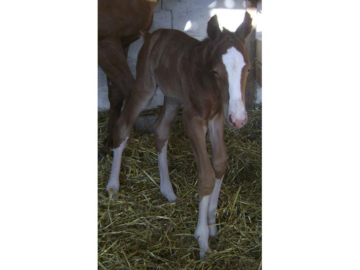 Rød som sin mor og far, og med en stor flot stjerneblis og 4 høje hvide sokker.