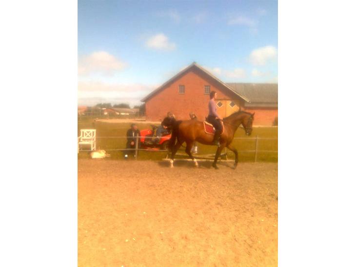 under ridning er hun en lidt bestemt dame, men jeg har købt hende som lære hest og det er hun super til, hun kan meget, men vis ikke jeg gør det helt perfekt, gør hun det bare ikke!!! og jeg har meget at lære, så hun tager bagenden på mig tit, men det kommer nok, jeg rider for træner to gange om ugen så det kommer stille og roligt.