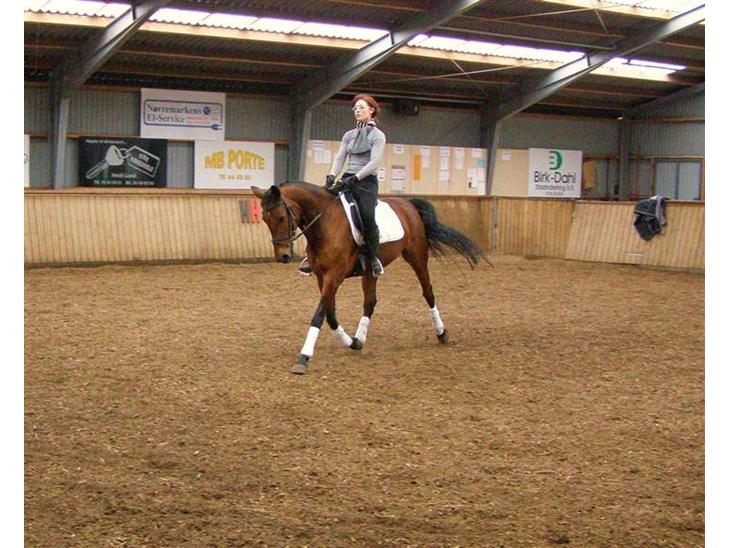 Vi har påbegyndt øvelser som schienkelvigninger, versade, kontragalop, anspring fra skridt til galop hvilket hun bare tager super fint.