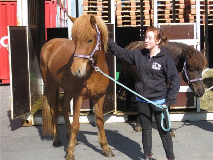 Han blev tilredet her i foråret af Haukur Garðarsson, hvis kone har avlet ham. Han er ikke gangsat, men hans gangarter er forholdsvis rene og gode.