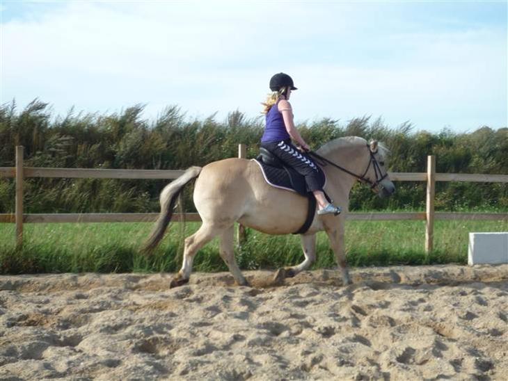 hun er ikke den nemmeste pony da hun har sine egner meninger, men det skal vi nok få rettet. hun kan ikke å meget endnu, jeg har fået hende til bidet et par gange i skkridt, men det er lidt svært for hende da hun er så tyk (det skal lige siges at hun har tabt sig meget),
