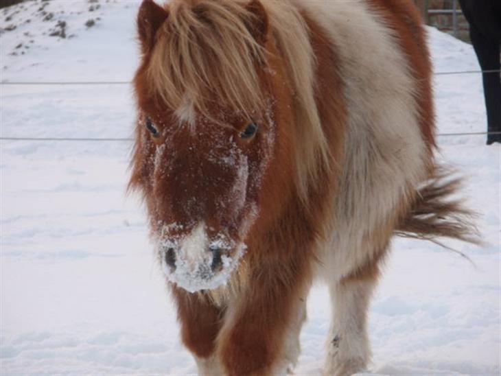 Det er min lille søster, som rider og passer ham. Jeg er jo alt for stor til ham.