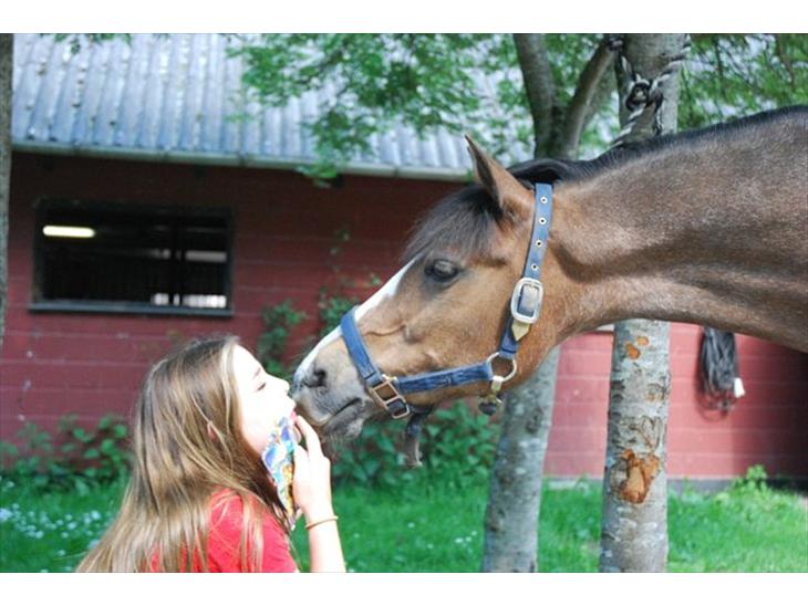 Nu er der en pige der hedder Anna der er 9 år gammel der har fået ham :-) hun er super glad for ham.. og jeg ser hende som mig lige da jeg fik ham... Falder af efter hvert spring fordi han bare flyver over det hele og hjælper hende i alle situationer, hun slår sig.. Men stiller sig op og klapper ham, og bare syntes han er fantastisk! Det var præcis sådan jeg havde det også... og jeg er rigtig glad for at det er lige præcis Anna der har fået ham.... Men hendes ambitioner bliver nok også større med årene, men den tid ser vi til..
