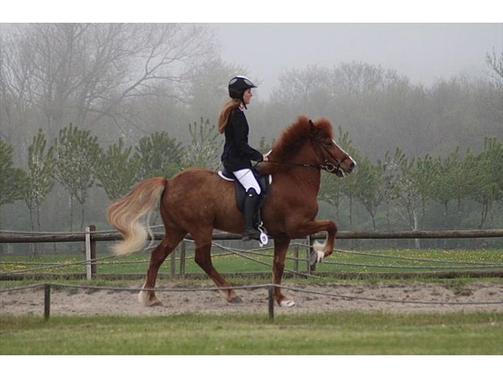 Tölt: Han har tölt i alle tempi, rigtig godt stræk og løft. Han har meget rummelighed og danser i sine bevægelser. Hans hovede er en smule højt, men så der noget at arbejde med :o)