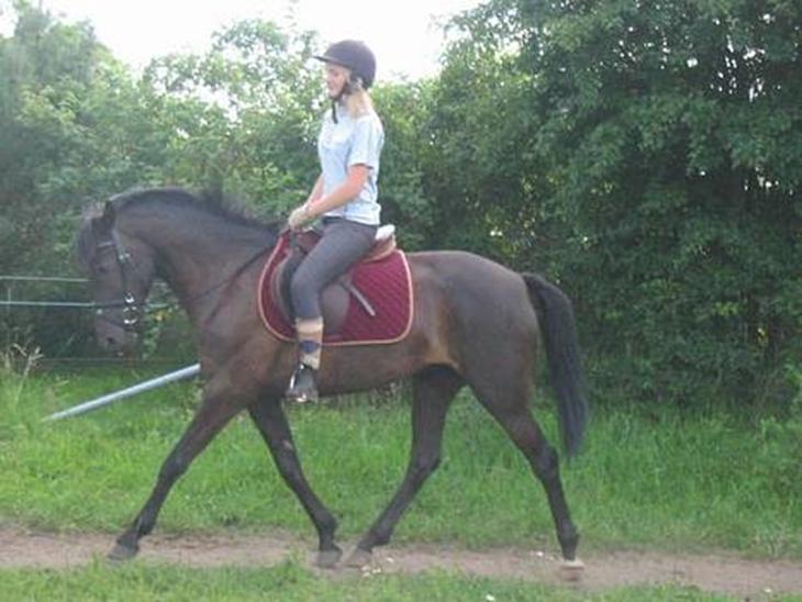 Hun er en hollandsk new forest. Hun er 4 år og har kun været redet i 6 uger.. men indtil vidre kan hun næsten gå en lc1 hun kan da go stabilt rundt i alle 3 gangarter..