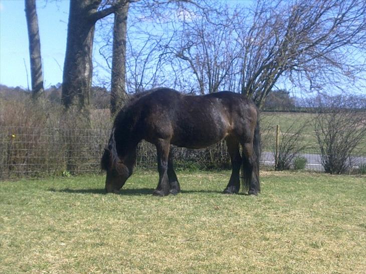 Hun er meget uplejet med forfærdelige hove og pels og hale. Og så vejer hun nok ca. 100 kg for meget. Tidligere ejer ville have sendt hende til slagtning i Holland, men det nænnede jeg simpelthen ikke, så nu er hun kommet hjem til mig, hvor hun skal gå og nyde sit otium sammen med mine to andre heste.